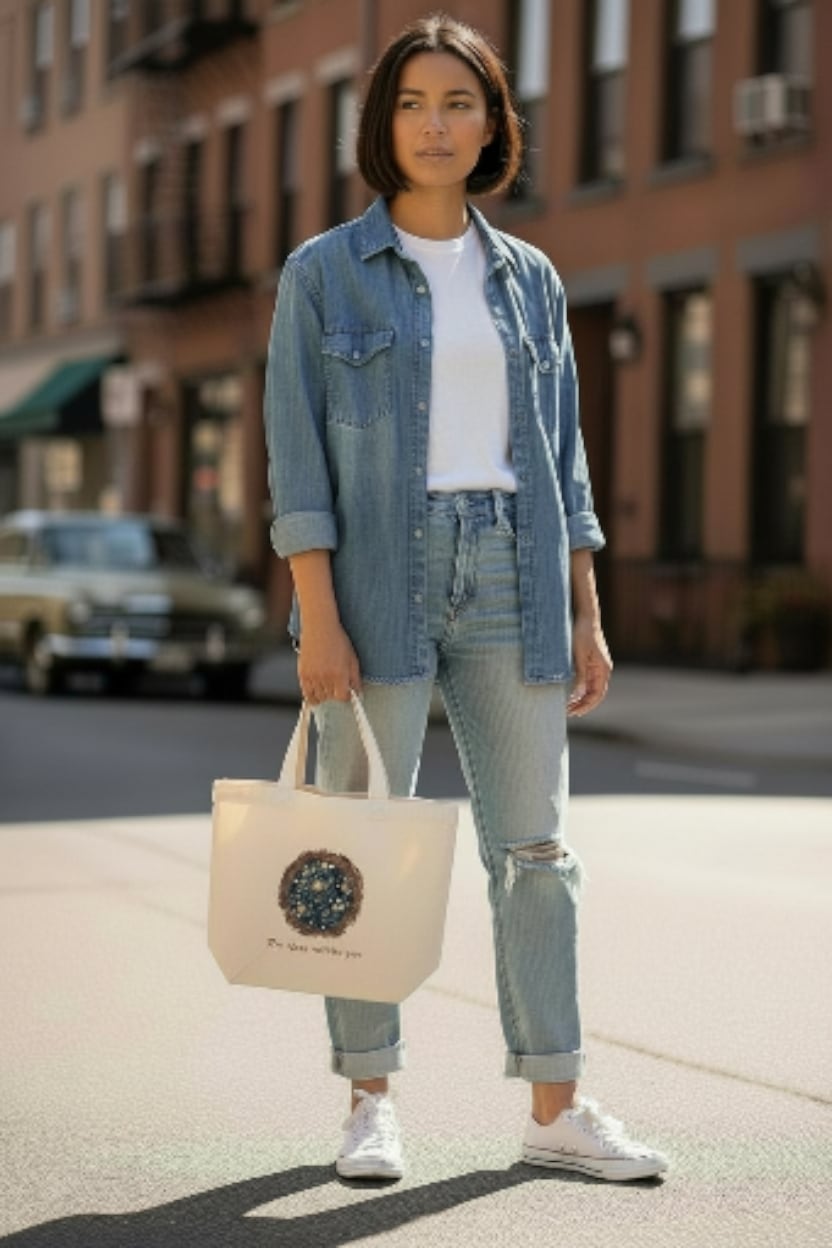 全ての人に輝く未来を。というブランドの哲学を施したトートバッグ。