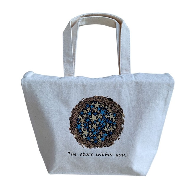 『The stars within you.』あなたの中にある星。 全ての人に輝く未来を。というブランドの哲学を施したトートバッグ。 スモールサイズでデイリーに使えて、使い込めば味が出るキャンバス生地となっています。 チョットのおでかけ時に便利な大きさです。 この商品には1点あたり、570円の工賃が就労継続支援B型に支払われています。 ------------------------------------------- ■ カラー ナチュラル ■ サイズ(cm) 内容量 約5L 高さ25 口幅32 底幅22 マチ10 ハンドル長さ37 ■ 素材 綿100% キャンバス ■ お手入れ/取り扱い注意事項 ・洗濯機使用可ですが、冷水での洗濯を推奨します。 ・生地の色落ちが起こる可能性がある為、洗濯の際は色物と分けることをおすすめします。 ・漂白剤の使用は避け、陰干しをおすすめします。 ・乾燥機のご使用はお控えください。 ■ 発送・注文に関する情報や注意事項 ・ご注文確定後、5営業日以内に発送いたします。 ・返品・交換は未使用の状態に限ります。ご注意ください。 ■ その他の情報や注意事項 ・色合いやサイズに関するご質問は、お気軽にご連絡ください。 ・在庫切れの場合は、入荷の際にお知らせするオプションもございます。 ---------about--------- 【アパレル×障害福祉事業所支援】 現在、就労継続支援B型事業所2社と協業。 製造の一部工程を依頼し320円~の作業工賃が障がい者の方たちに支払われています。 我々は、障害や生まれも何も関係なく未来に希望を持てる仕組みを創り、 服を通して、人と人の繋がりを体感できるブランドを目指しています。 ============ 【oración stars】...ファッションに革新的な変化をもたらせた90年代のアメリカンカジュアルスタイルを提案。 当時のファッションカルチャーや人の繋がりを表現しています。